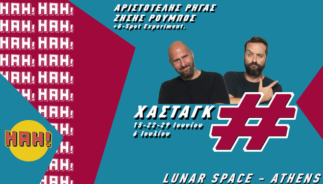 Μετά τις sold out εμφανίσεις στο Premise Comedy Club και το χαμό που έκαναν στην Τεχνόπολη, ο Ζήσης Ρούμπος και ο Αριστοτέλης Ρήγας σκάνε στο πιο φρέσκο stage της πόλης, στο Lunar Space στο Κέντρο Πολιτισμού «Ελληνικός Κόσμος», με ανανεωμένο υλικό και την παράσταση «Χάσταγκ», η οποία –για πρώτη φορά– ανεβαίνει με full band επί σκηνής, τους G-Spot Experiment.