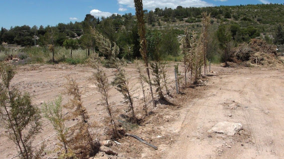 - Θα μάθουμε ποιος είχε τη φαεινή ιδέα να φυτέψει περιμετρικά σε αποστάσεις μικρότερες του μισού μέτρου(!) δεκάδες δενδρύλλια από το κρατικό δασικό φυτώριο, τα οποία στη συνέχεια αφέθηκαν απότιστα και μαράθηκαν και πετάχτηκαν; (φωτό 1)