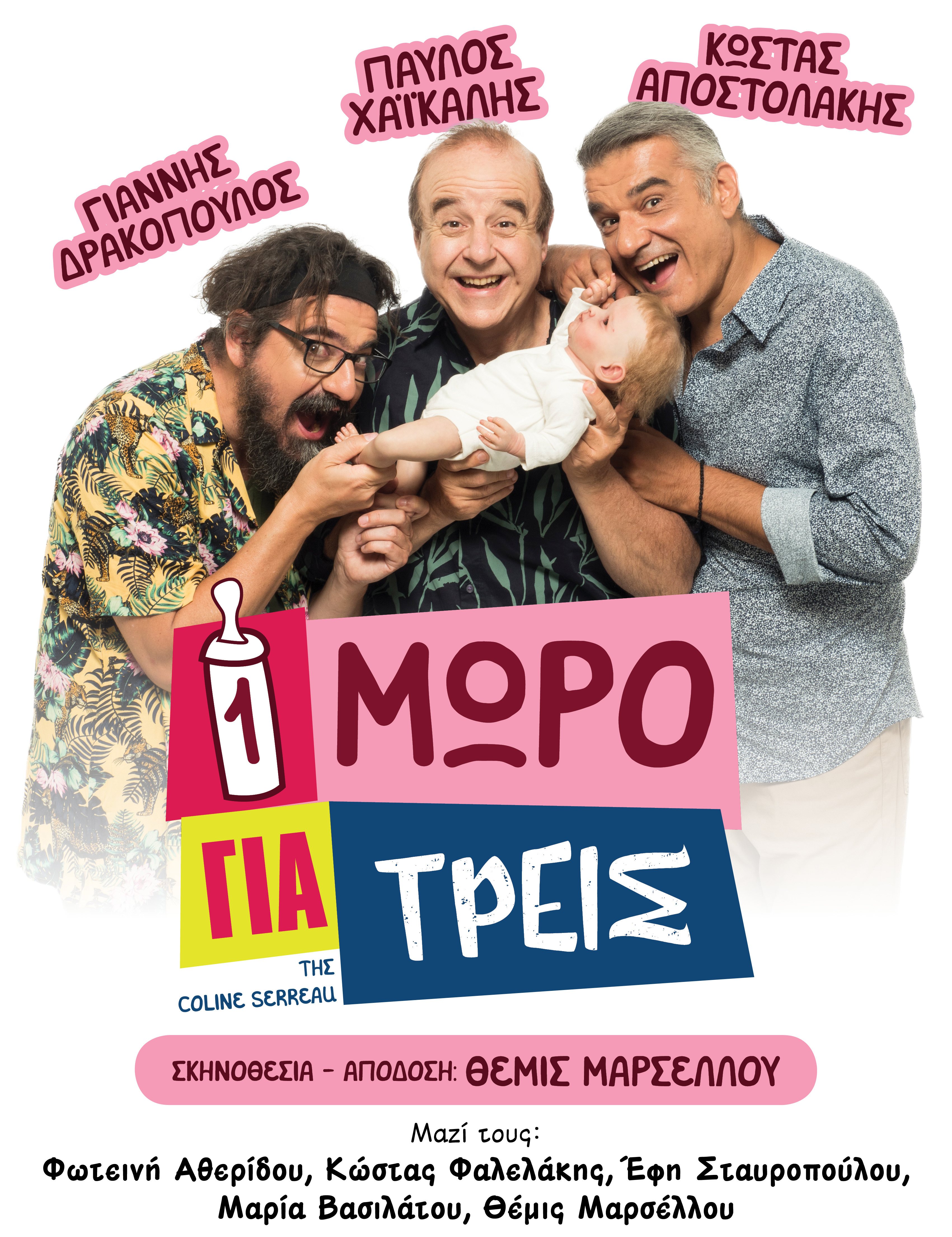 Προπώληση εισιτηρίων: https://www.viva.gr/tickets/theater/periodeia/ena-moro-gia-treis/