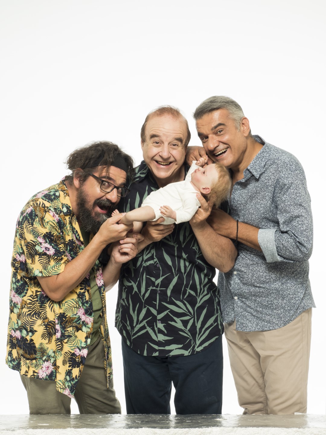 Το έργο παρουσιάζεται για πρώτη φορά στην Ελλάδα, στη θεατρική του εκδοχή, σε απόδοση και σκηνοθεσία της Θέμιδας Μαρσέλλου. Μια δροσερή κωμωδία που αναγκάζει τρεις εργένηδες να αντιμετωπίσουν άγριους γκάνγκστερς και καχύποπτους αστυνομικούς ενώ βιώνουν απροσδόκητα τη συγκλονιστική και σαρωτική ευθύνη της πατρότητας και παράλληλα ξυπνούν μέσα τους, πρωτόγνωρα συναισθήματα.