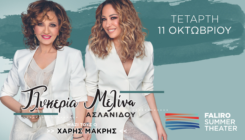 Η Γλυκερία και η Μελίνα Ασλανίδου, δύο από τις σπουδαιότερες φωνές του σύγχρονου ελληνικού τραγουδιού, θα εμφανιστούν την Τετάρτη 11 Οκτωβρίου στο Faliro Summer Theater!
