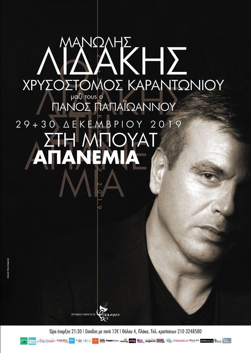 Μανώλης Λιδάκης Χρυσόστομος Καραντωνίου Μπουάτ «Απανεμιά» 29 & 30 Δεκεμβρίου Μαζί τους ο Πάνος Παπαϊωάννου