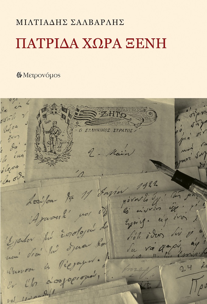Κυκλοφορεί από τις εκδόσεις Μετρονόμος το νέο μυθιστόρημα του Μιλτιάδη Σαλβαρλή «Πατρίδα χώρα ξένη». Θέμα του, η ιστορία δύο παιδιών που εγκατέλειψαν τα πατρογονικά τους χώματα, με τους διωγμούς του 1914 και του 1922, εγκαταστάθηκαν με τις οικογένειές τους σε διαφορετικά μέρη της Ελλάδας, έσμιξαν στην Αθήνα της Κατοχής, παντρεύτηκαν και έμειναν μαζί έως το γέρμα της ζωής τους.