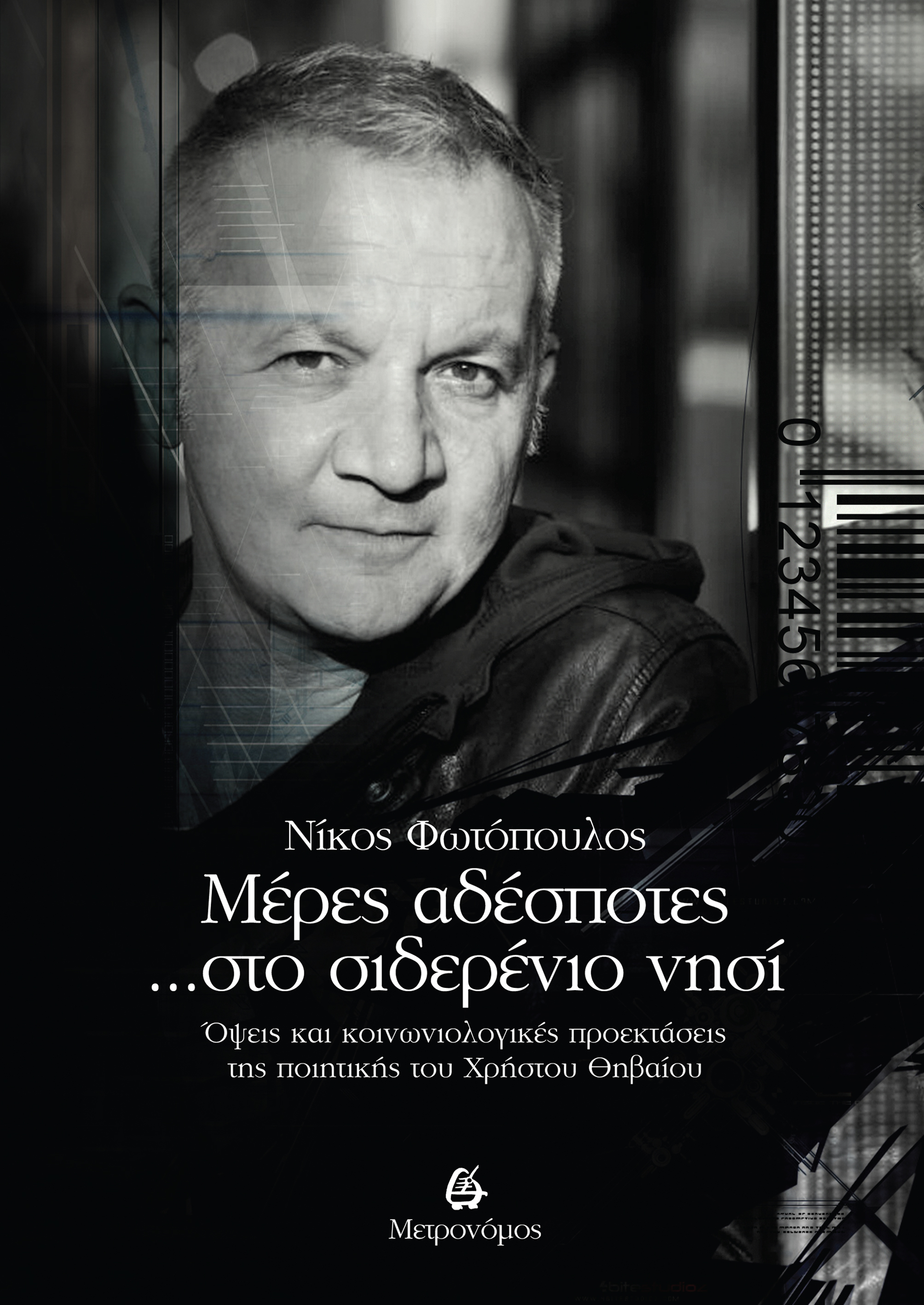 Κυκλοφορεί από τις εκδόσεις Μετρονόμος, το βιβλίο του ποιητή και πανεπιστημιακού Νίκου Φωτόπουλου, «Μέρες αδέσποτες… στο σιδερένιο νησί: όψεις και κοινωνιολογικές προεκτάσεις της ποιητικής του Χρήστου Θηβαίου». Πρόκειται για μια εξαιρετικά περιεκτική προσέγγιση της εικοσάχρονης κειμενικής πορείας του σπουδαίου Έλληνα τραγουδοποιού και ερμηνευτή από το πρώτο του έργο, «Μέρες αδέσποτες» (με τους Συνήθεις Υπόπτους) μέχρι και το πιο πρόσφατο, «Σιδερένιο νησί».