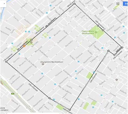Αφετηρία και τερματισμός στο Πάρκο Μ. Θεοδωράκης (πρώην ΤΥΠΕΤ) και περιλαμβάνει: