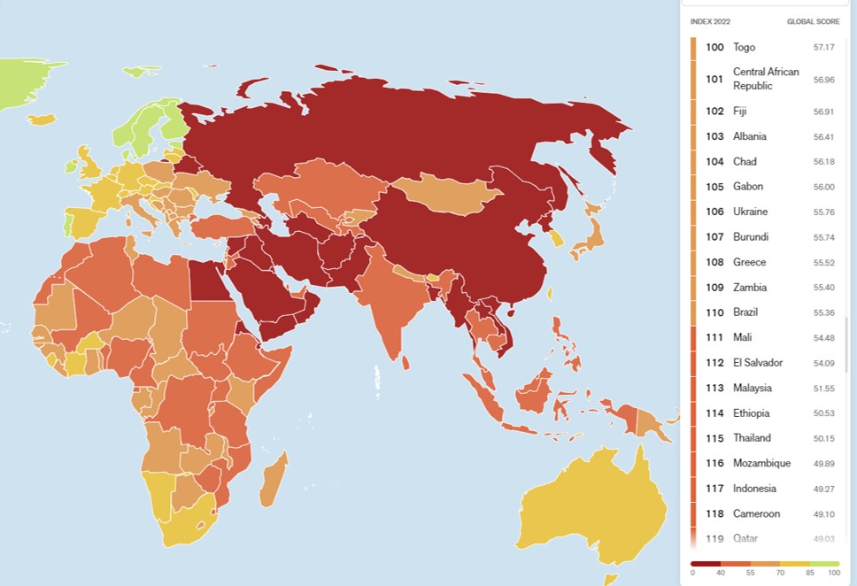 Παραθέτουμε την ντροπιαστική κατάταξης της χώρας μας: