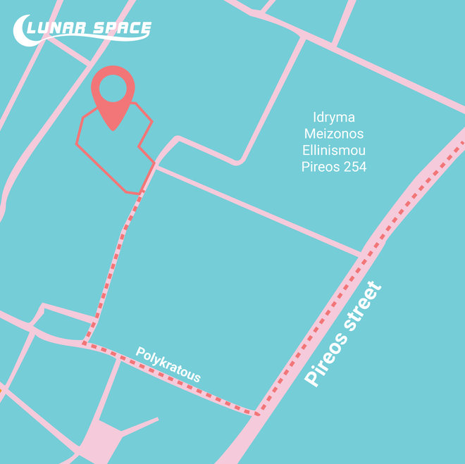 Σημείωση: Η είσοδος στο Lunar Space πραγματοποιείται από την οδό Πολυκράτους 6 (μέσω ιδιωτικού δρόμου). Για πληρέστερη εικόνα, συμβουλευτείτε τον σχετικό χάρτη.
